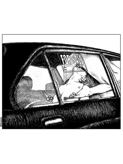 El trabajo de la ilustradora Apollonia Saintclair podría considerarse desde esa perspectiva. En sus dibujos hay una fuerte tendencia hacia el realismo que sin embargo, en un instante, se interrumpe con la inclusión inesperada de un elemento imposible que trastorna nuestra idea de normalidad. Según explica la autora, al crecer se dio cuenta que los pensamientos lascivos nublaban cada momento del día. Imaginaba con frecuencia lo que sería ser tomada por su profesor, por sus amigos… Ser despojada de toda la ropa, ser poseída mientras cientos, miles de espectadores se entumecen por el espectáculo que ella protagoniza. No tenía otra solución que dibujar sus fantasías, dibujar su existencia; era eso o rendirse ante el deseo. Un componente distintivo de su estilo es su preferencia por el monocromatismo, una elegante elección que refuerza visualmente la convivencia entre realidad y fantasía y también otros dualismos a veces presentes en el campo de la sexualidad.Después de todo es en esa dialéctica entre mente y realidad, fantasía y acto, donde varias de nuestras decisiones eróticas toman forma.